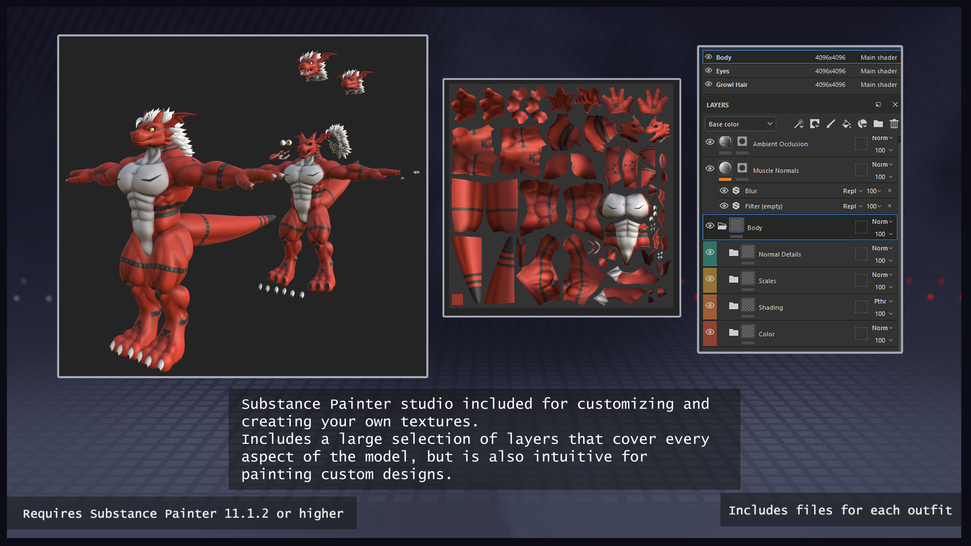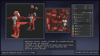 - Each including a blender and substance painter file for custom texturing and editing, available as separate downloads.